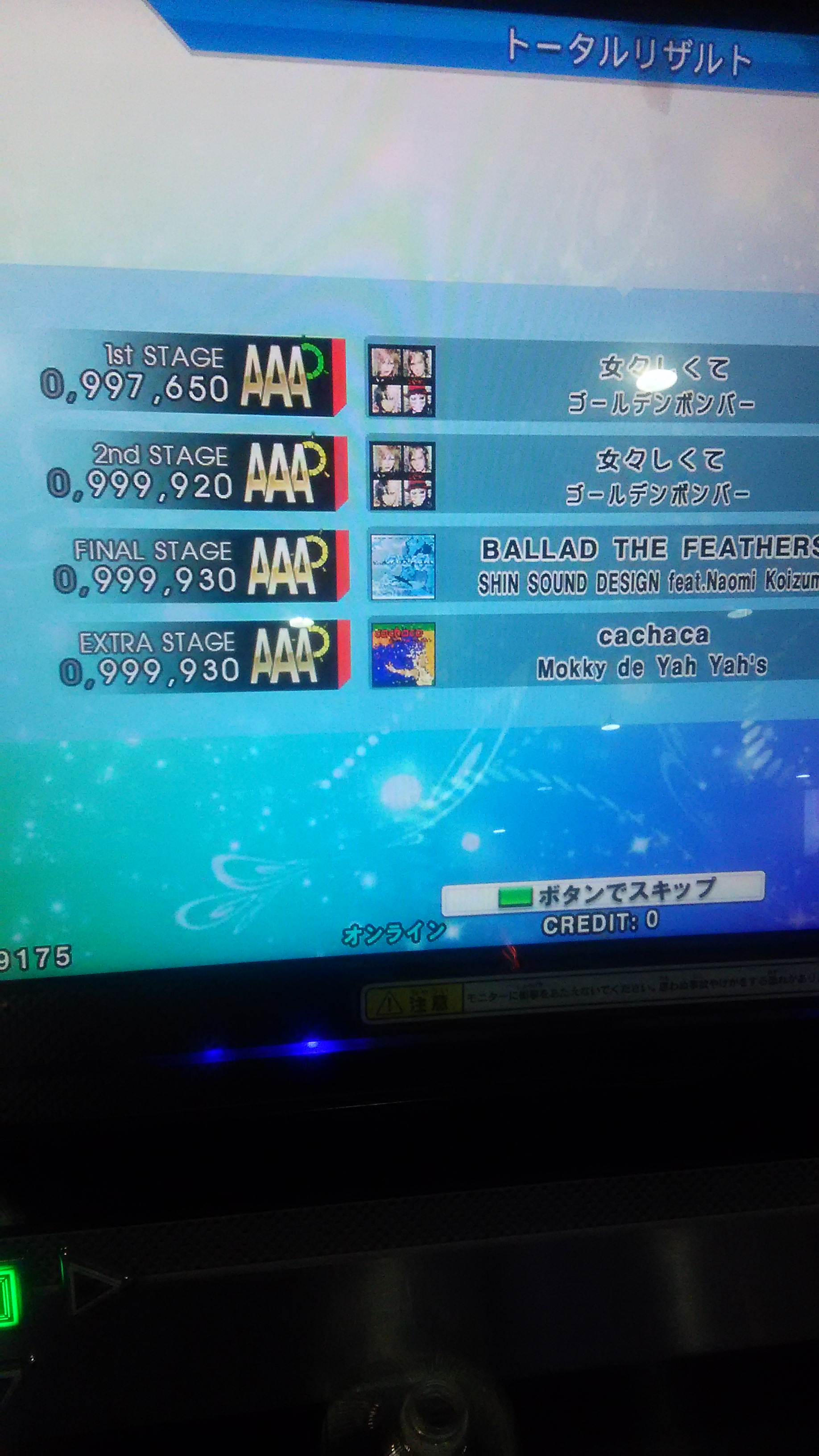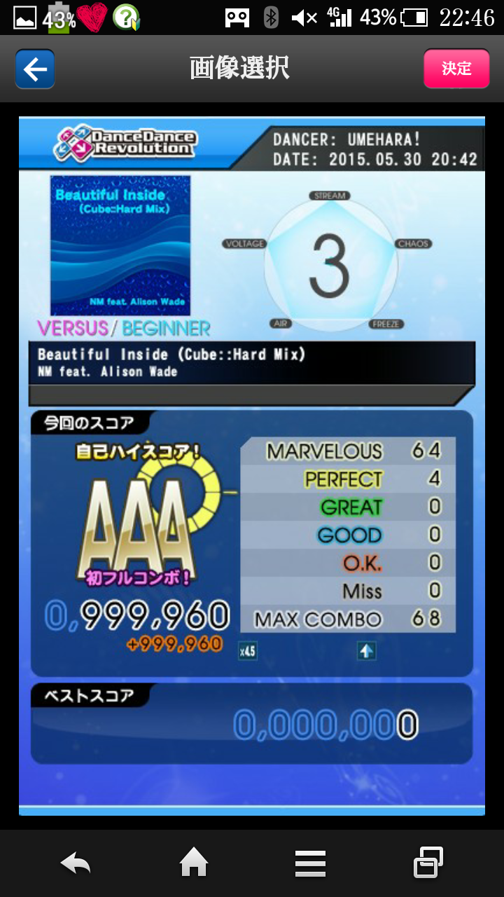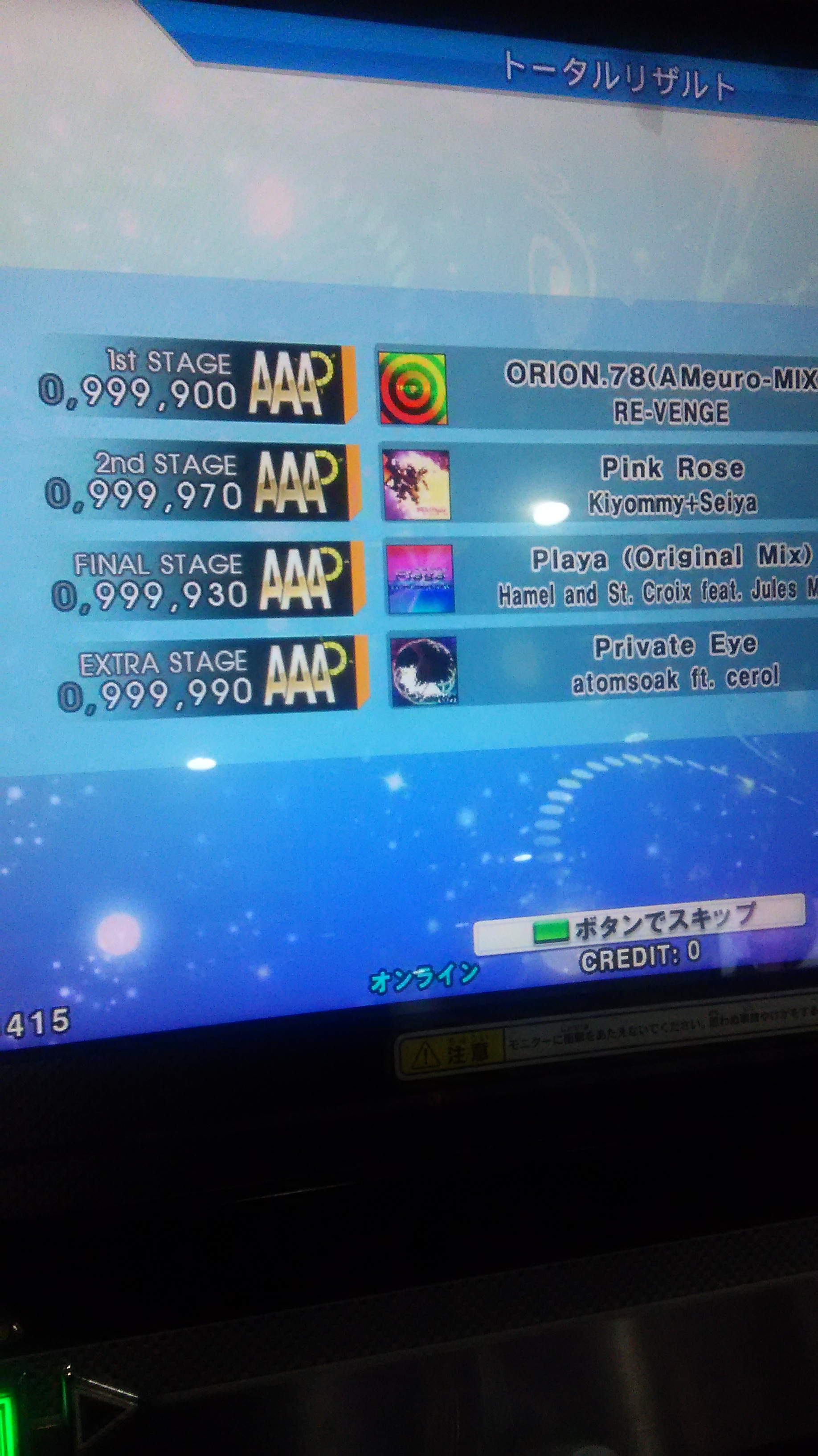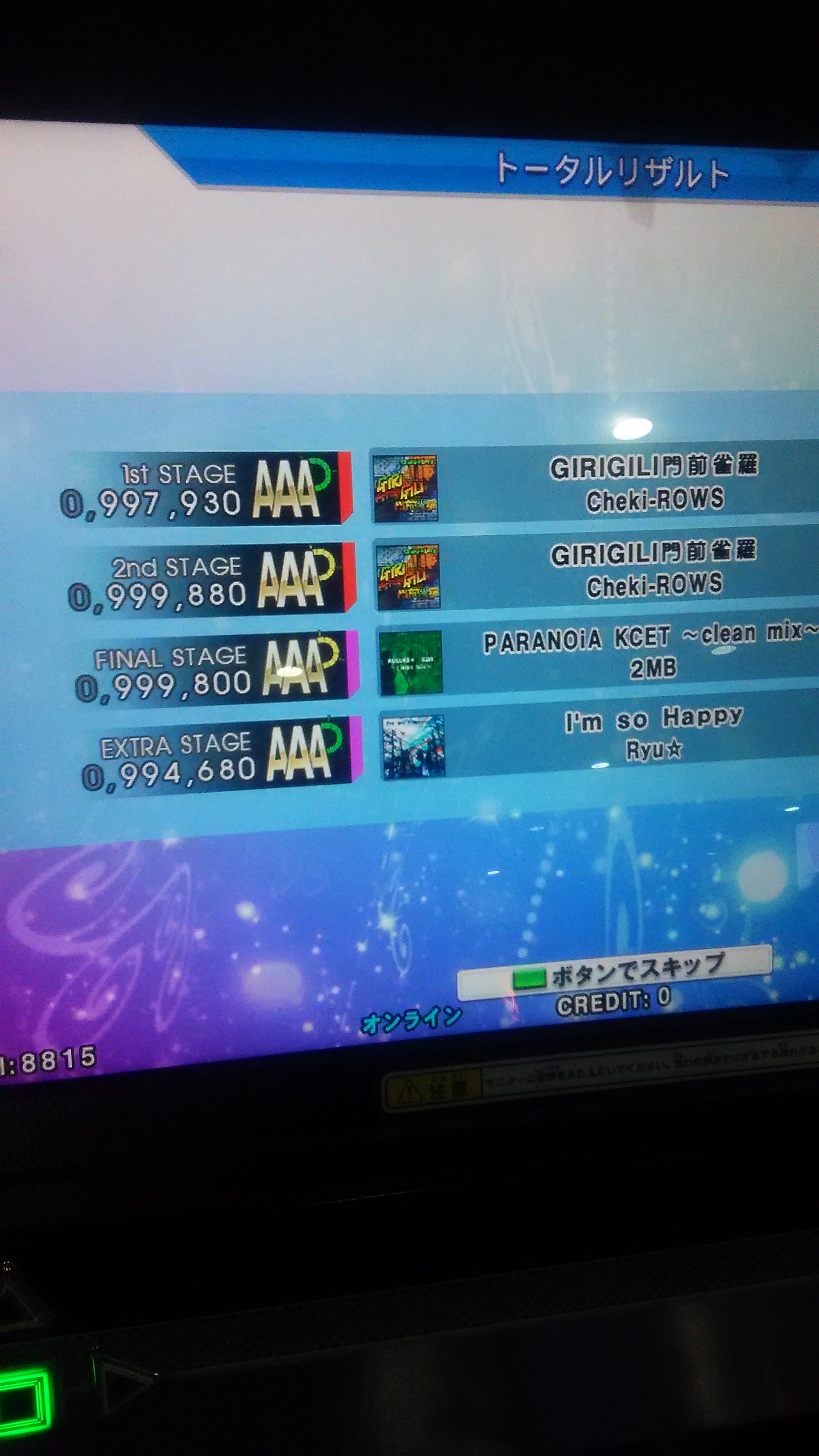 無事に終了w激はなんとなく譜面の形で覚えてるけど、難易度変わると全然だめ><