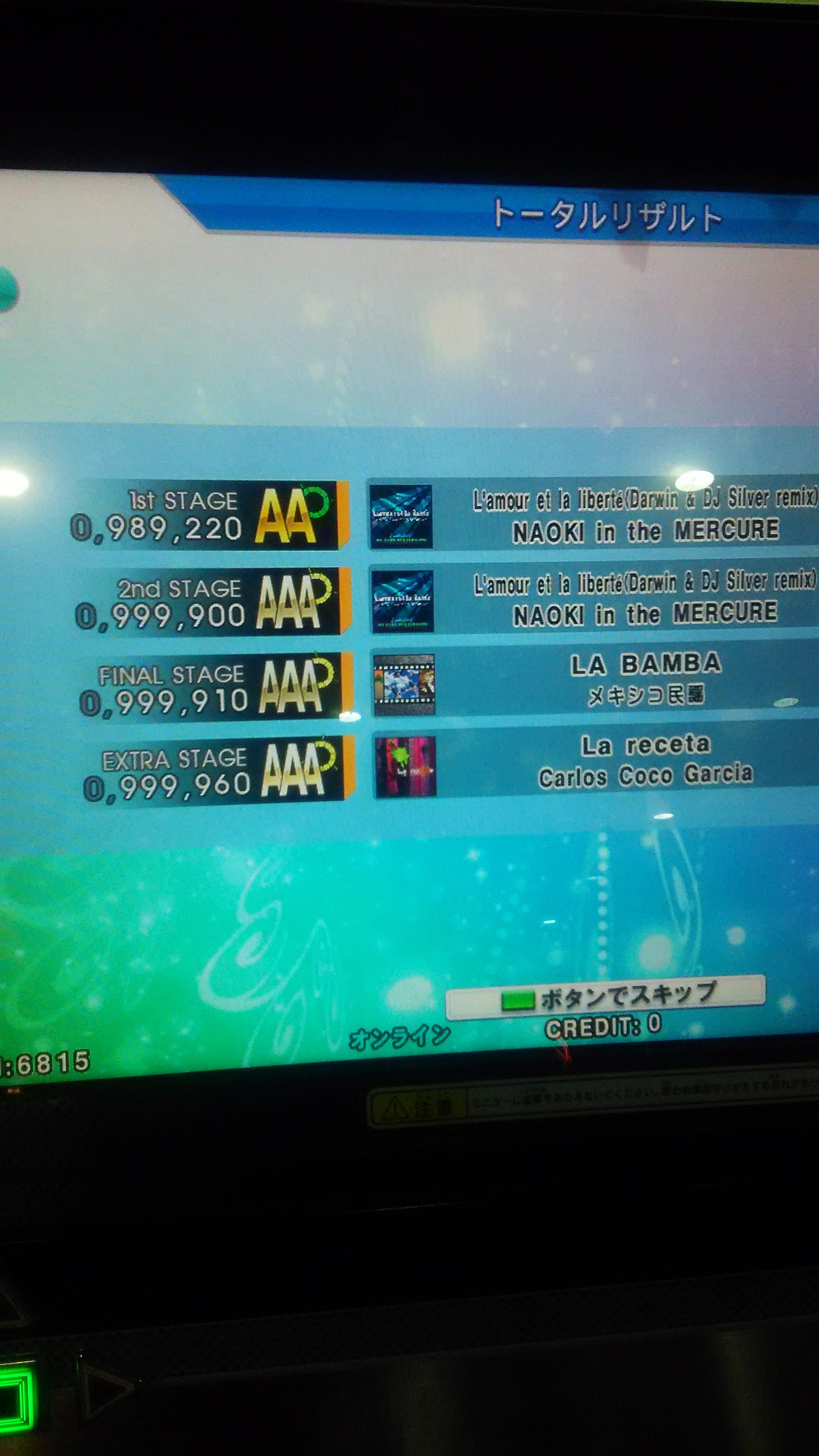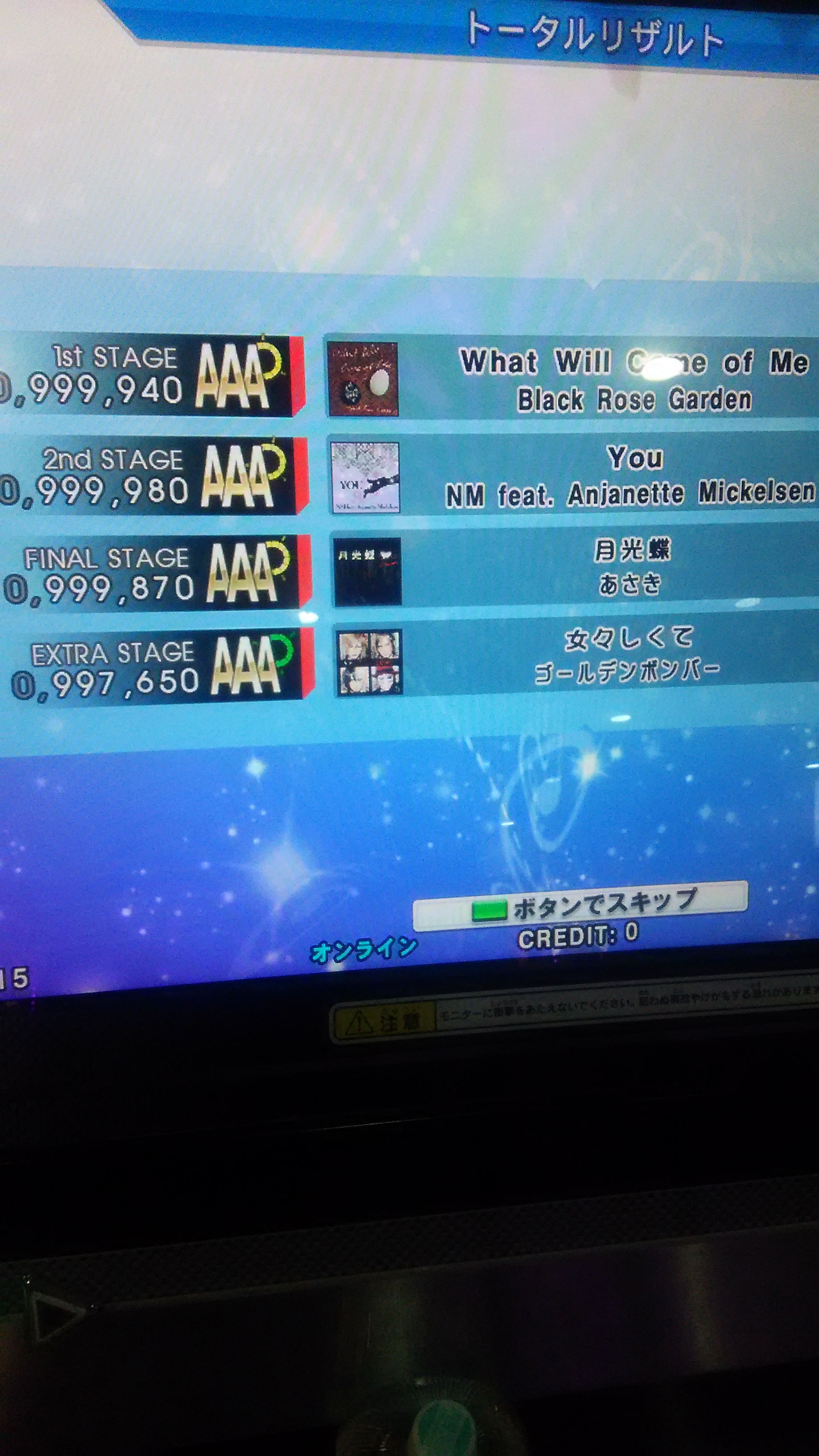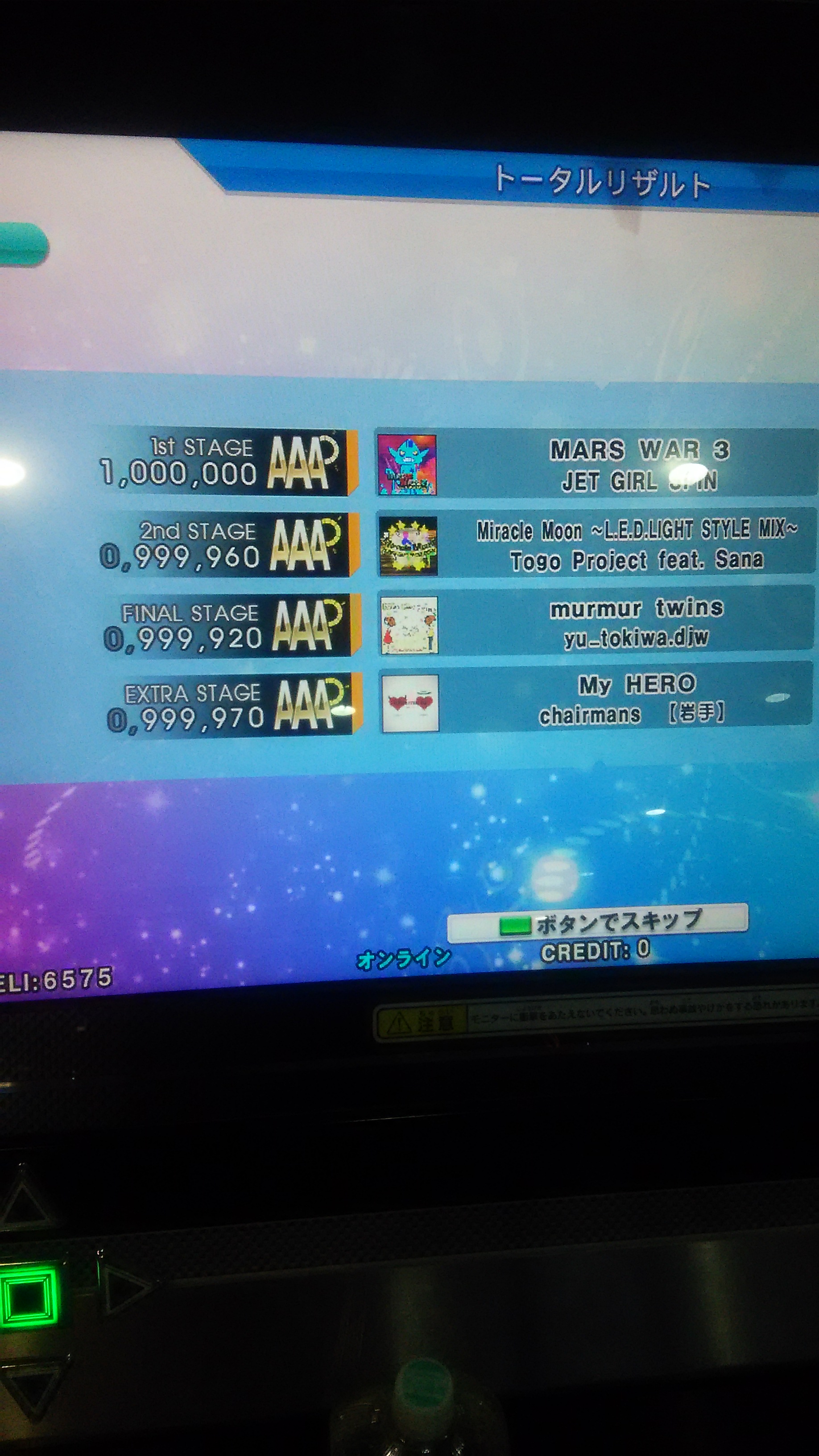 無事に終了w激はなんとなく譜面の形で覚えてるけど、難易度変わると全然だめ><
